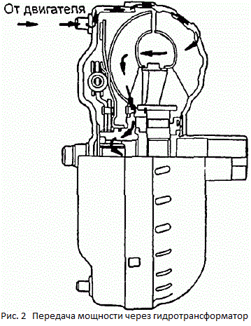 В силовом потоке гидротрансформатор осуществляет гидравлическую связь между двигателем и коробкой передач...